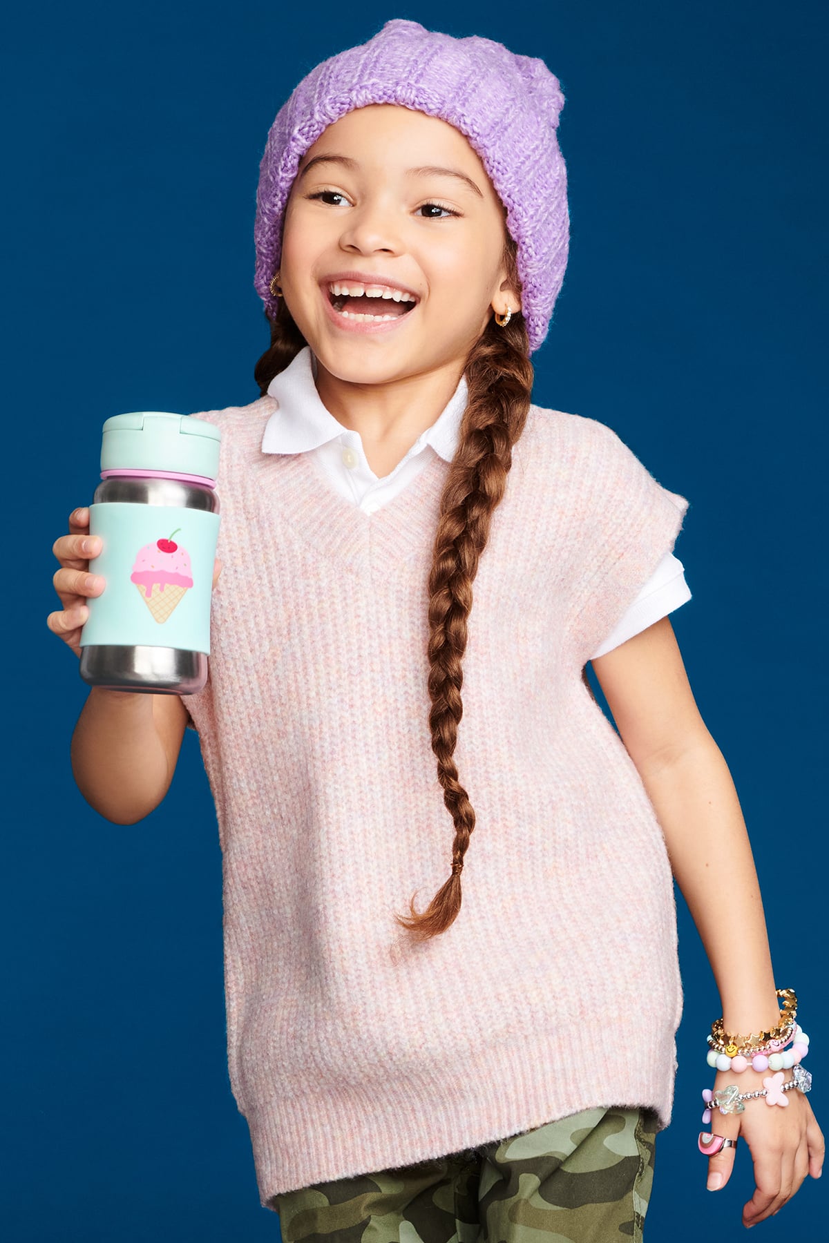 Fill their sipping with epic style! Featuring cool designs that let little personalities shine, our stainless steel water bottle helps keep drinks cool on-the-go. The pop-up lid keeps the flexible straw clean, while the non-slip silicone sleeve protects little hands from cold surfaces. Grab it by the strap & go! Check out our entire Spark Style collection today.